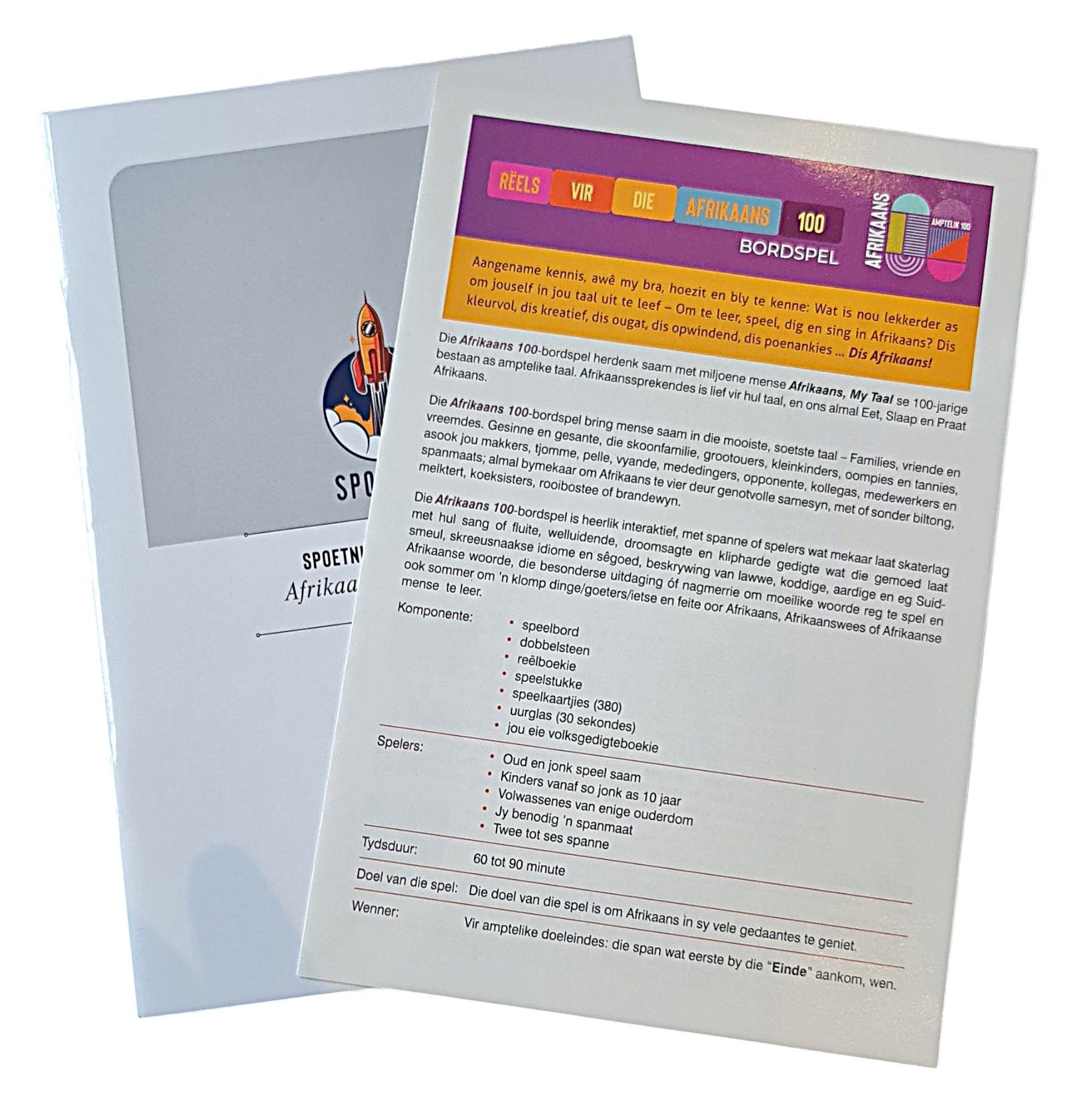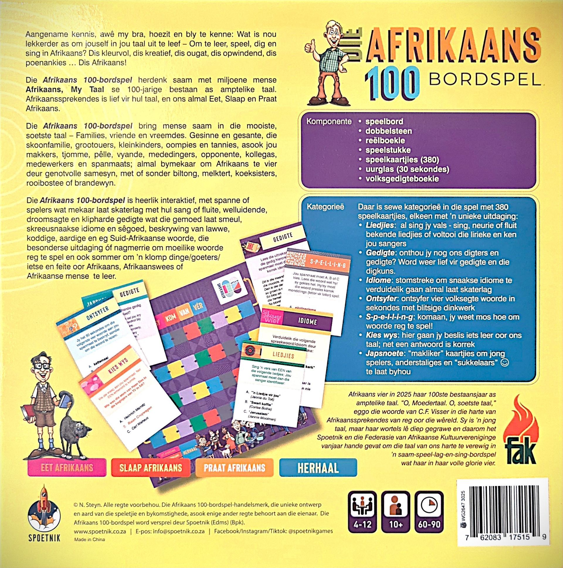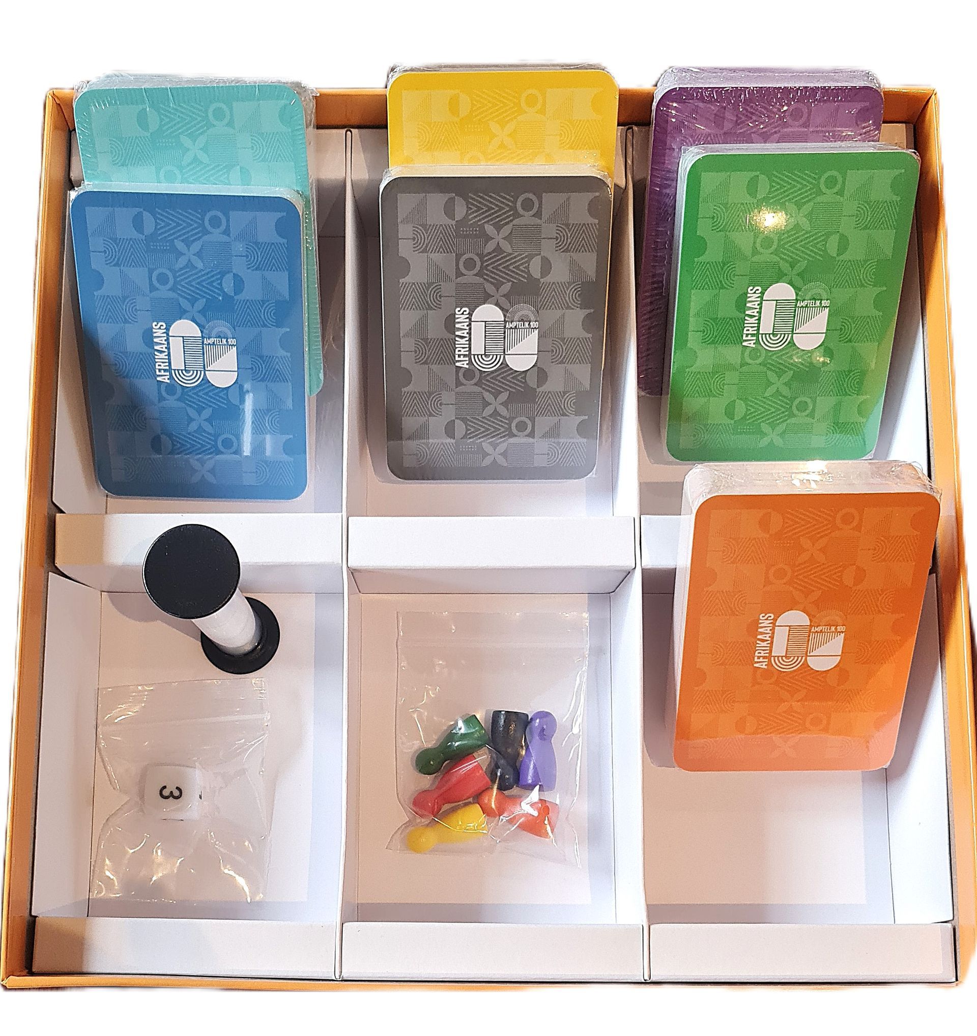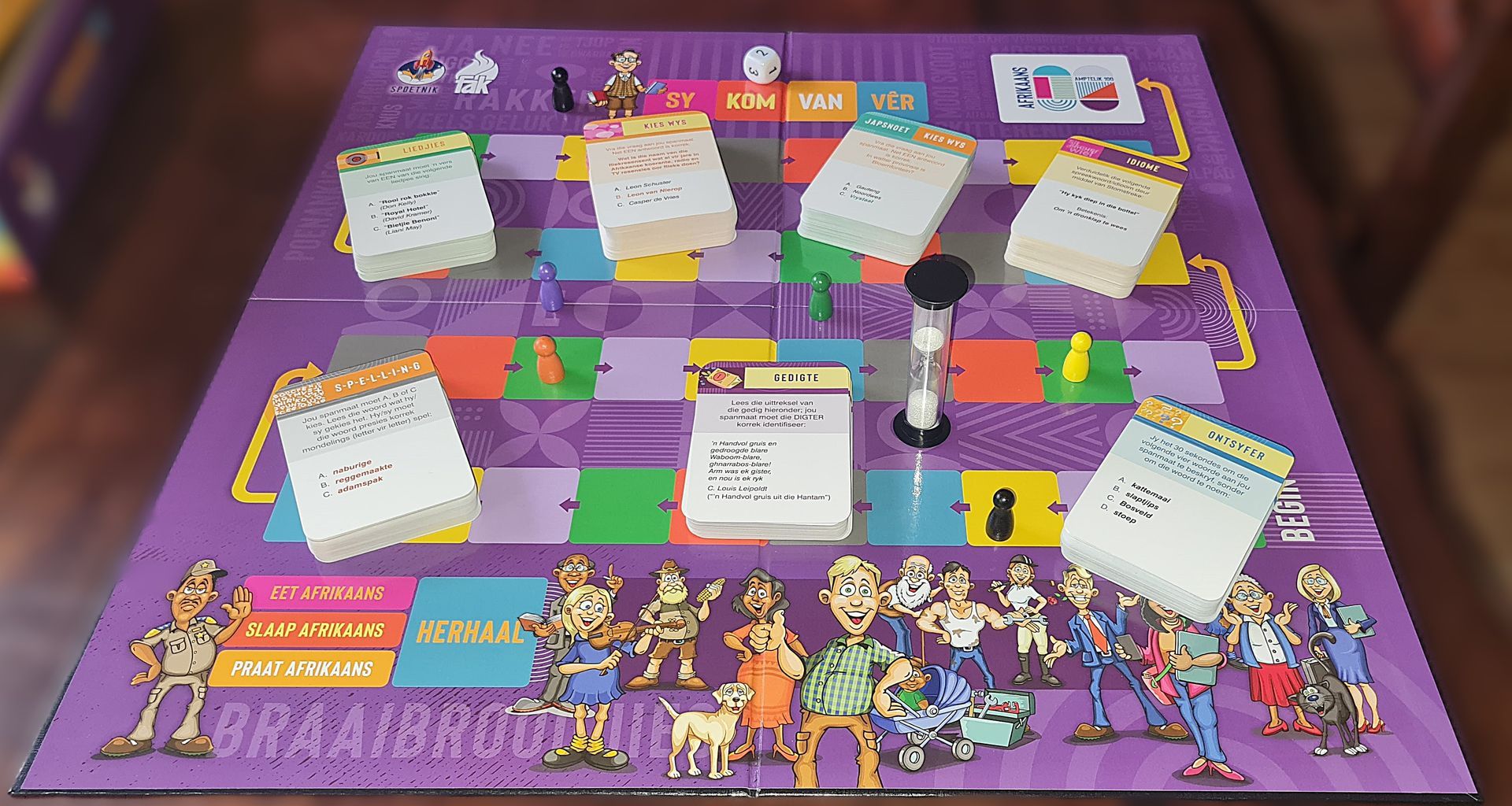 is heerlik interaktief, met spanne of spelers wat mekaar laat skaterlag met hul sang of fluite, welluidende, droomsagte en klipharde gedigte wat die gemoed laat smeul, skreeusnaakse idiome en sêgoed, beskrywing van lawwe, koddige, aardige en eg Suid-Afrikaanse woorde, die besonderse uitdaging óf nagmerrie om moeilike woorde reg te spel en ook sommer om ’n klomp dinge/goeters/ietse en feite oor Afrikaans,