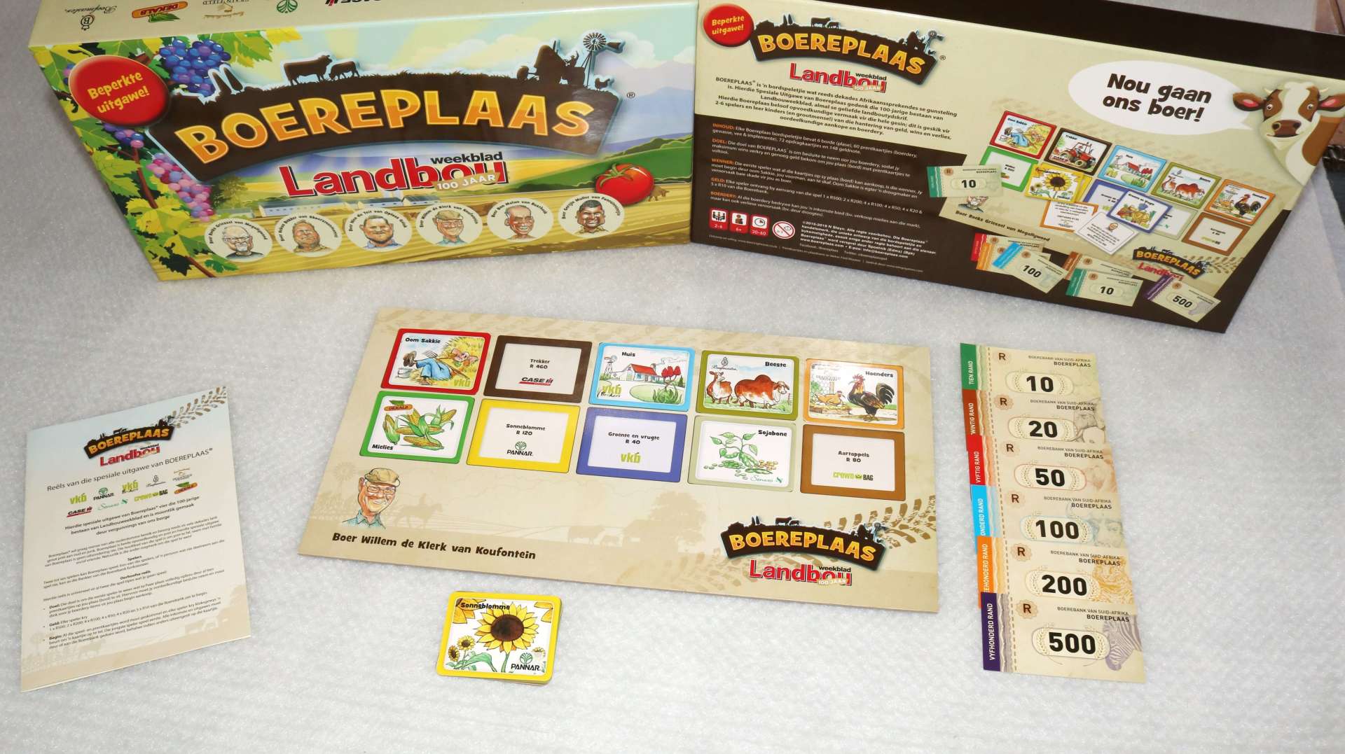 Boereplaas is ’n bordspeletjie wat reeds dekades Afrikaanssprekendes se gunsteling is. Hierdie Landbou Boereplaas beloof opvoedkundige vermaak vir die hele gesin; dit is geskik vir 2-6 spelers en leer kinders (en grootmense!) van die hantering van geld, wins en verlies, oordeelkundige aankope en boerdery.